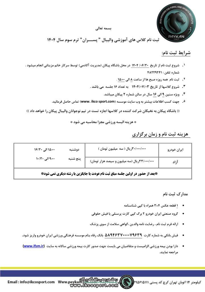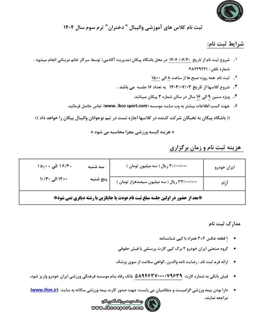 به گزارش روابط عمومی باشگاه پیکان ، ثبت نام کلاس های آموزشی ترم سوم والیبال پسران و دختران در محل آکادمی باشگاه پیکان آغاز گردید .