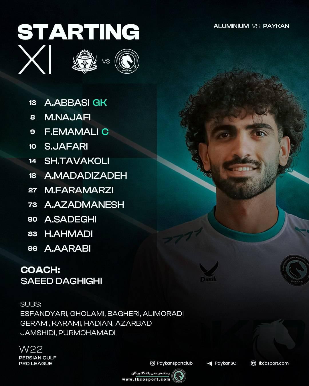 بر این اساس، بازیکنان زیر از ابتدا در ترکیب پیکان به میدان خواهند رفت: