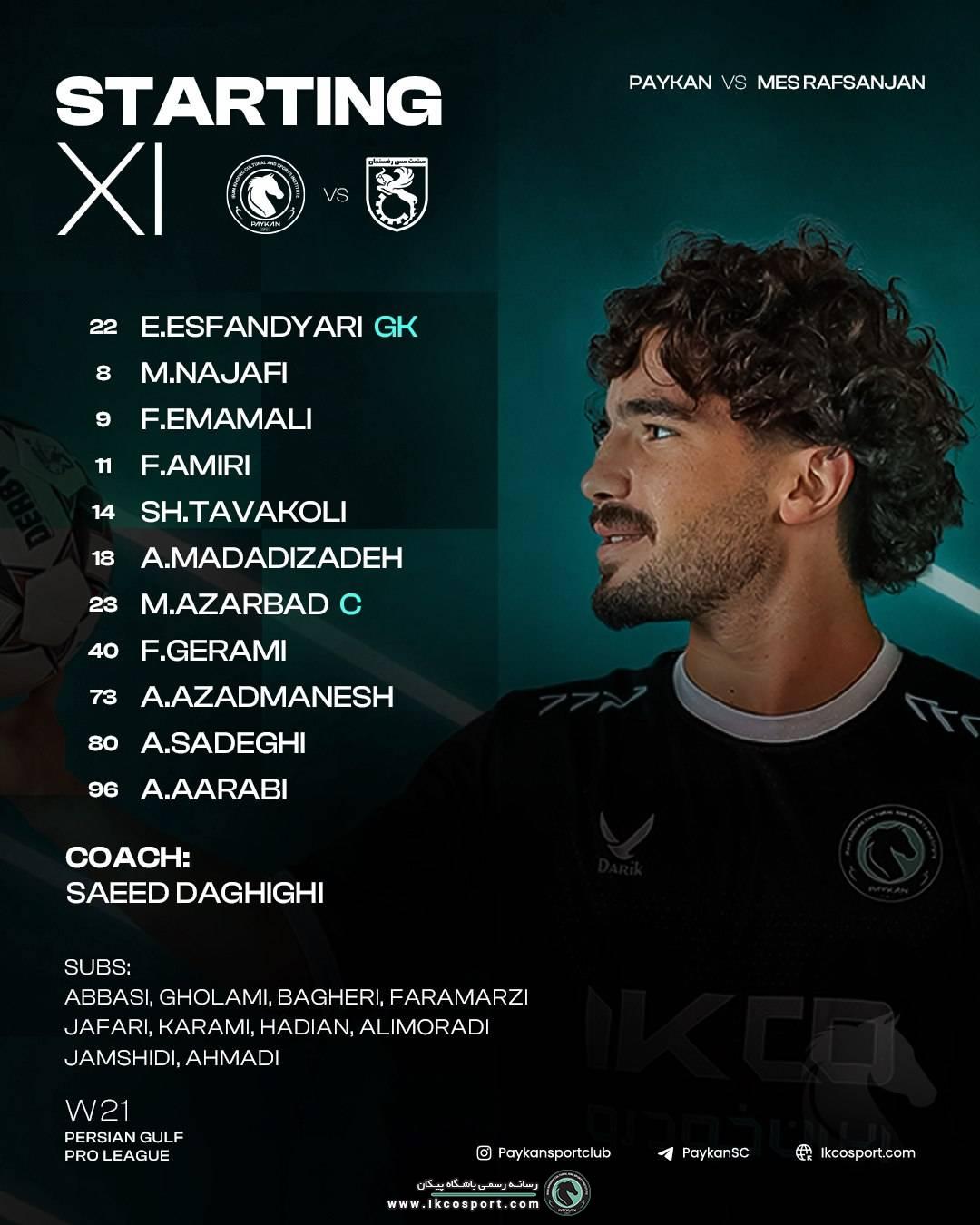 به گزارش روابط عمومی باشگاه پیکان تهران، سعید دقیقی سرمربی خودروسازان، یازده بازیکن منتخب خود را برای دیدار مقابل مس رفسنجان اعلام کرد.
